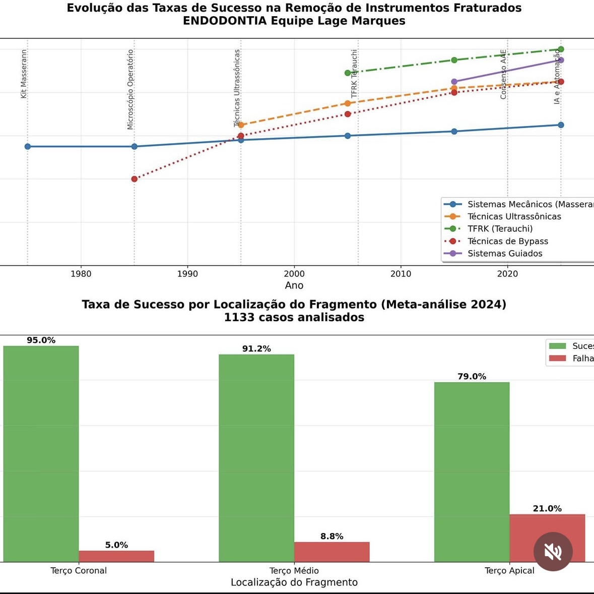 A análise abrangente da literatura científica sobre remoção de instrumentos Separados na endodontia revela evolução notável das técnicas e resultados ao longodas últimas cinco décadas.