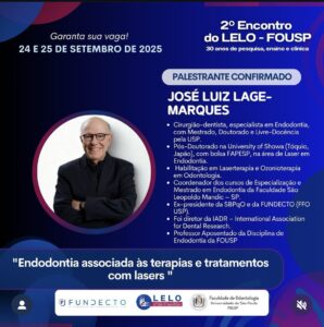 “Endodontia associada às terapias e tratamentos com lasers “ PALESTRANTE CONFIRMADO JOSÉ LUIZ LAGE-MARQUES se inscreva agora: